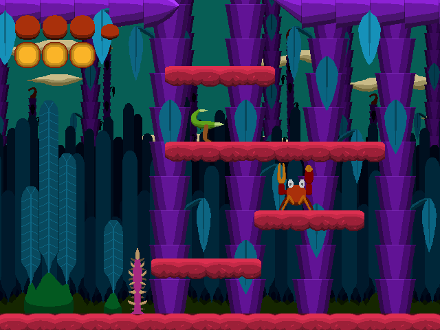 Play as Krago, crab who wants to get a rare fruit. He needs to collect upgrades to get past obstacles and reach the fruit. Can he get the fruit?